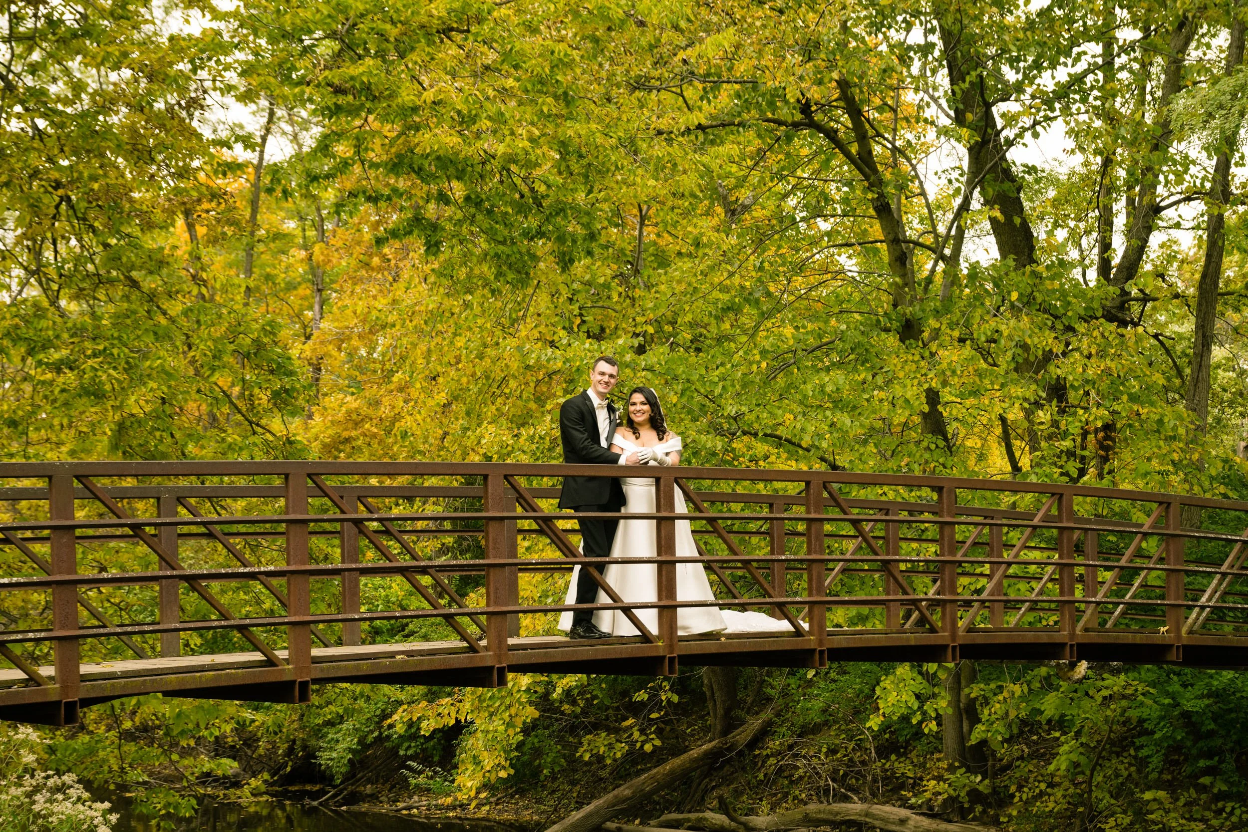 A Fall wedding photo at Deep River Park in Hobart, Indiana.