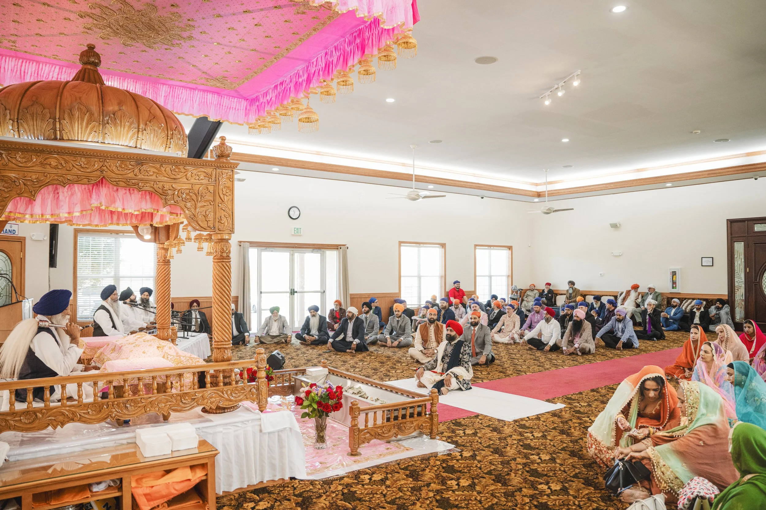 The gurdwara’s serene white façade and golden domes created a stunning backdrop as guests arrived in colorful attire, ready to witness the union of two families.